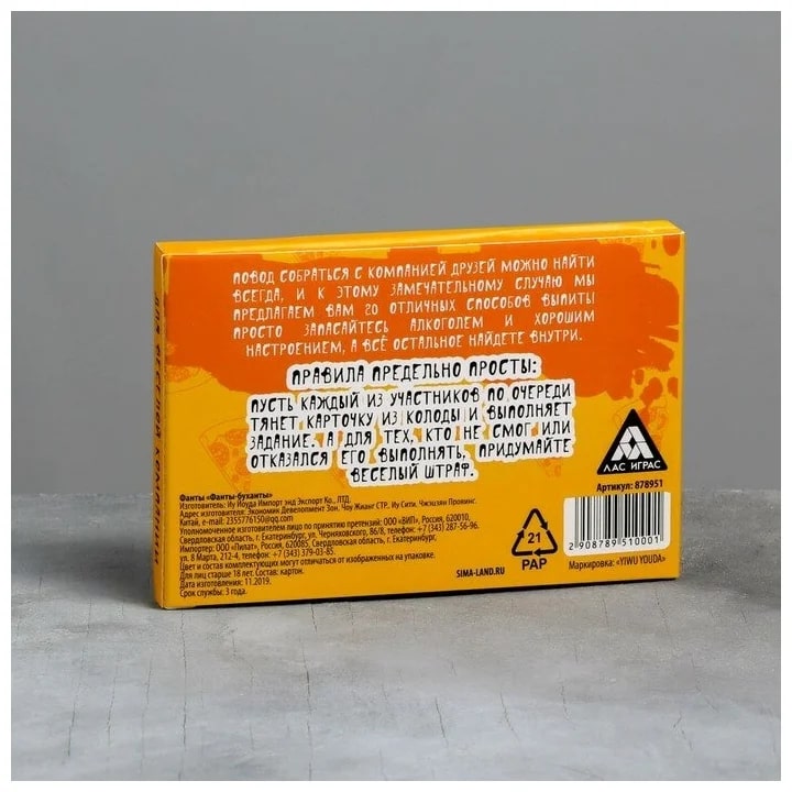 Купить игра для компании "фанты буханты" 20 карт от 100 руб. с доставкой до пункта выдачи в Чухломе. Интернет магазин ДекаМаркет. Оплата при получении.